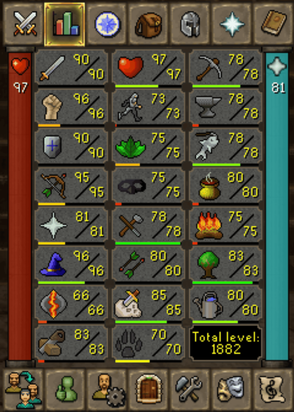You could work on different skills while you play: cooking, fishing, archery, woodcutting, gardening, mining, strength, running, and much more.